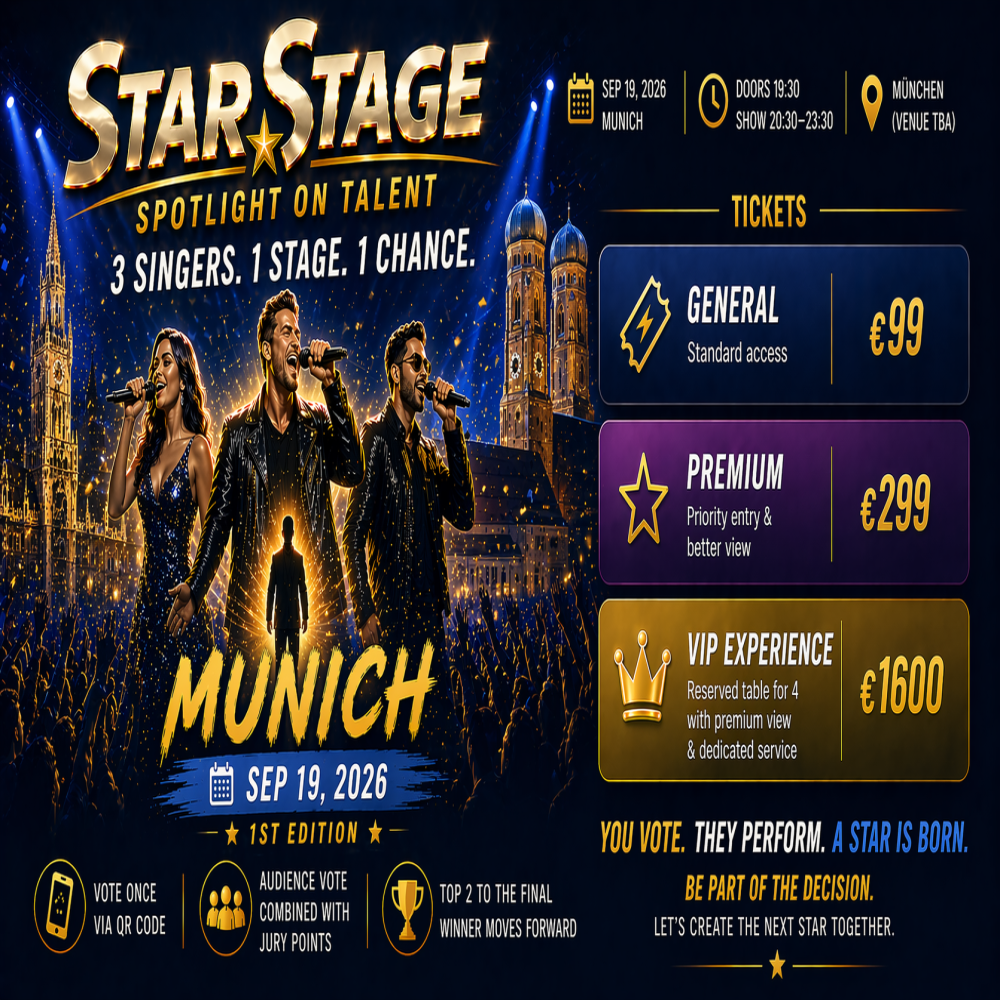 Munich becomes the stage for StarStage — where international talent meets European elegance. In one of Europe’s most prestigious cultural hubs, this high-energy showcase brings together top local and global talent agencies for an unforgettable live experience.